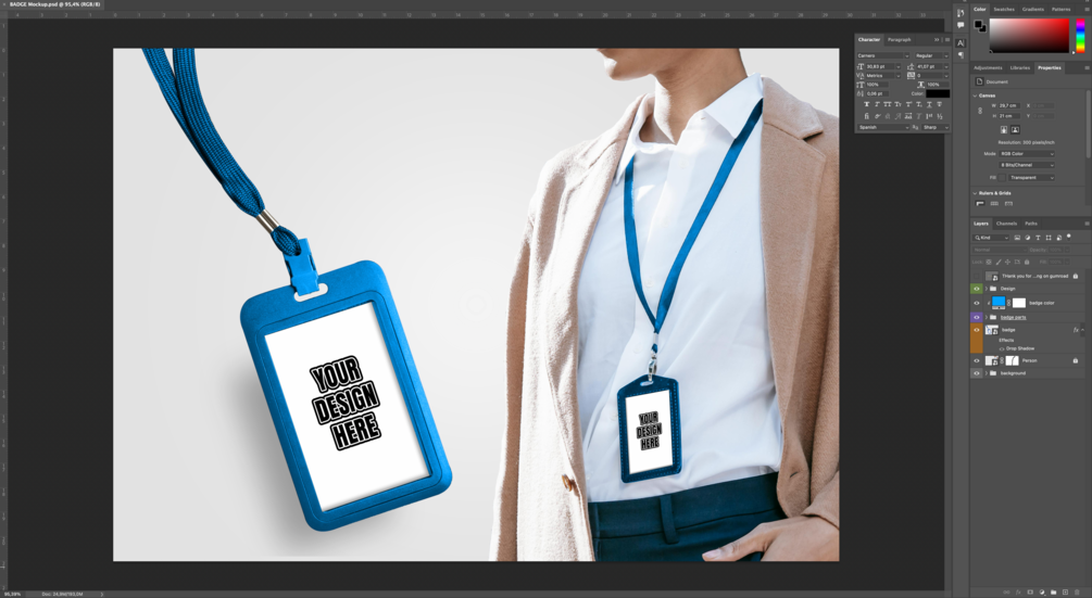 Presenting a mockup of a badge you can edit in Photoshop and admire at the same time the result on a person.